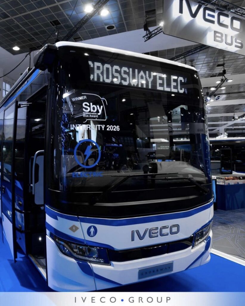 IVECO BUS CROSSWAY ELEC, 100% електрически автобус, представен в края на миналата година, спечели престижната награда „Устойчив автобус на годината 2026“ в категорията „междуградски автобуси“. Това е петата такава награда за нашата гама CROSSWAY, признание, което потвърждава позицията на IVECO като лидер в междуградския сегмент и поетият ангажимент за подкрепа на транспортните оператори в техния енергиен преход с пълна гама от алтернативни енергии, включително електрически.