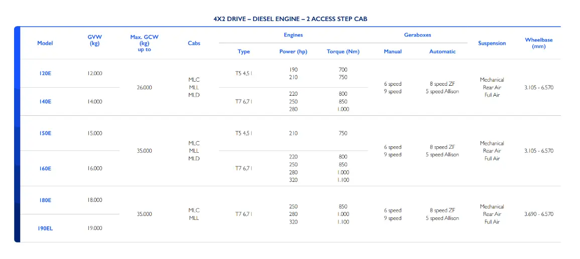 - Изцяло въздушна спирачна система в диапазона от 11 до 19 тона