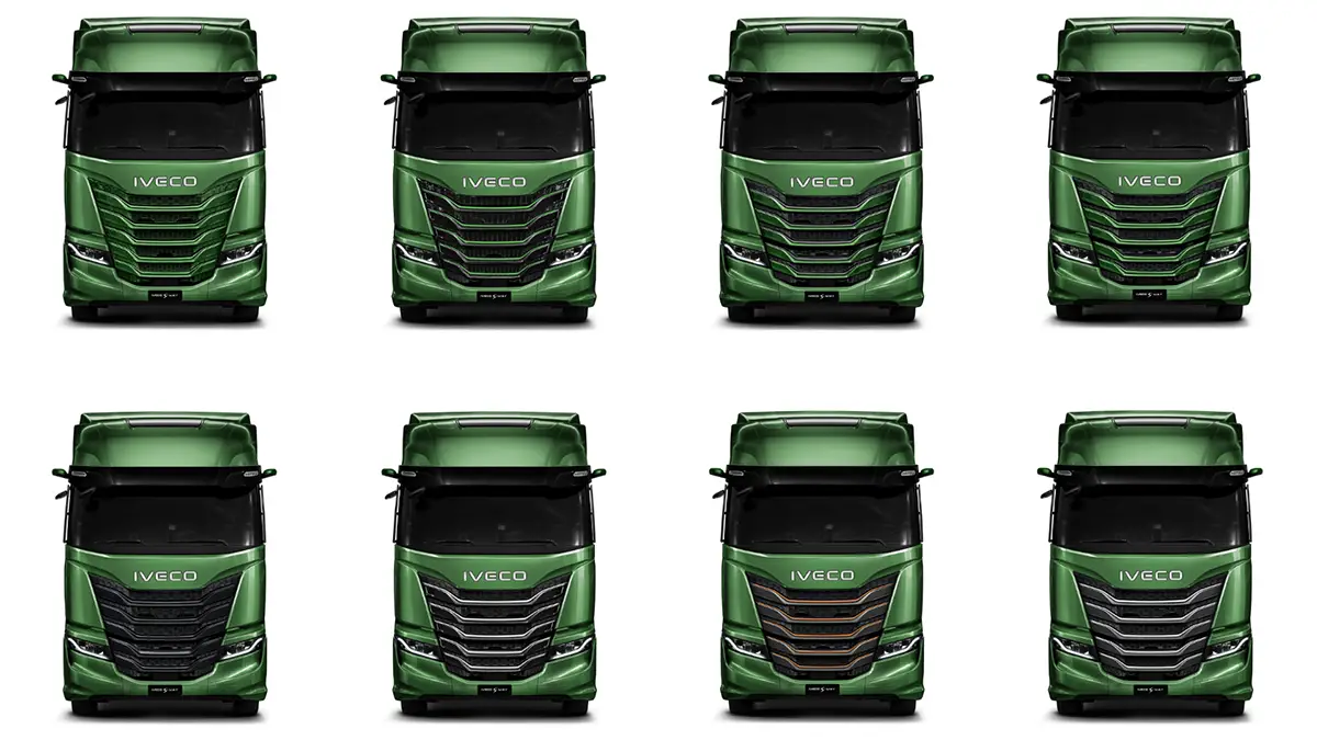 Новата радиаторна решетка се предлага с различни завършвания по ваш вкус: гланцови покрития, метални елементи или дори цвят на каросерията, което позволява на операторите да адаптират своя IVECO S-Way така, че да отразява тяхната корпоративна марка.