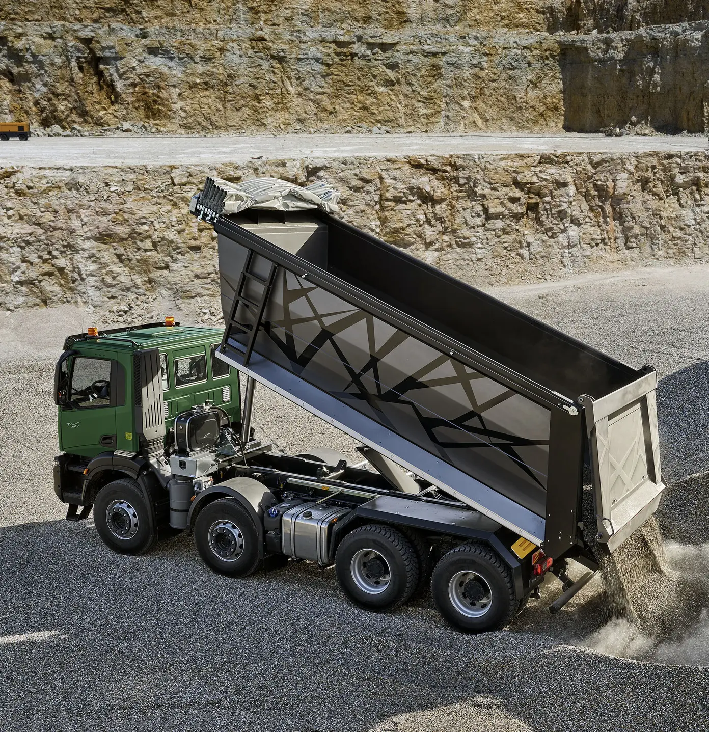 Благодарение на здравата си рама и оптимизирането на теглото IVECO T-Way е замислен да бъде оборудван със самосвали с голям капацитет за превоз на големи товари.