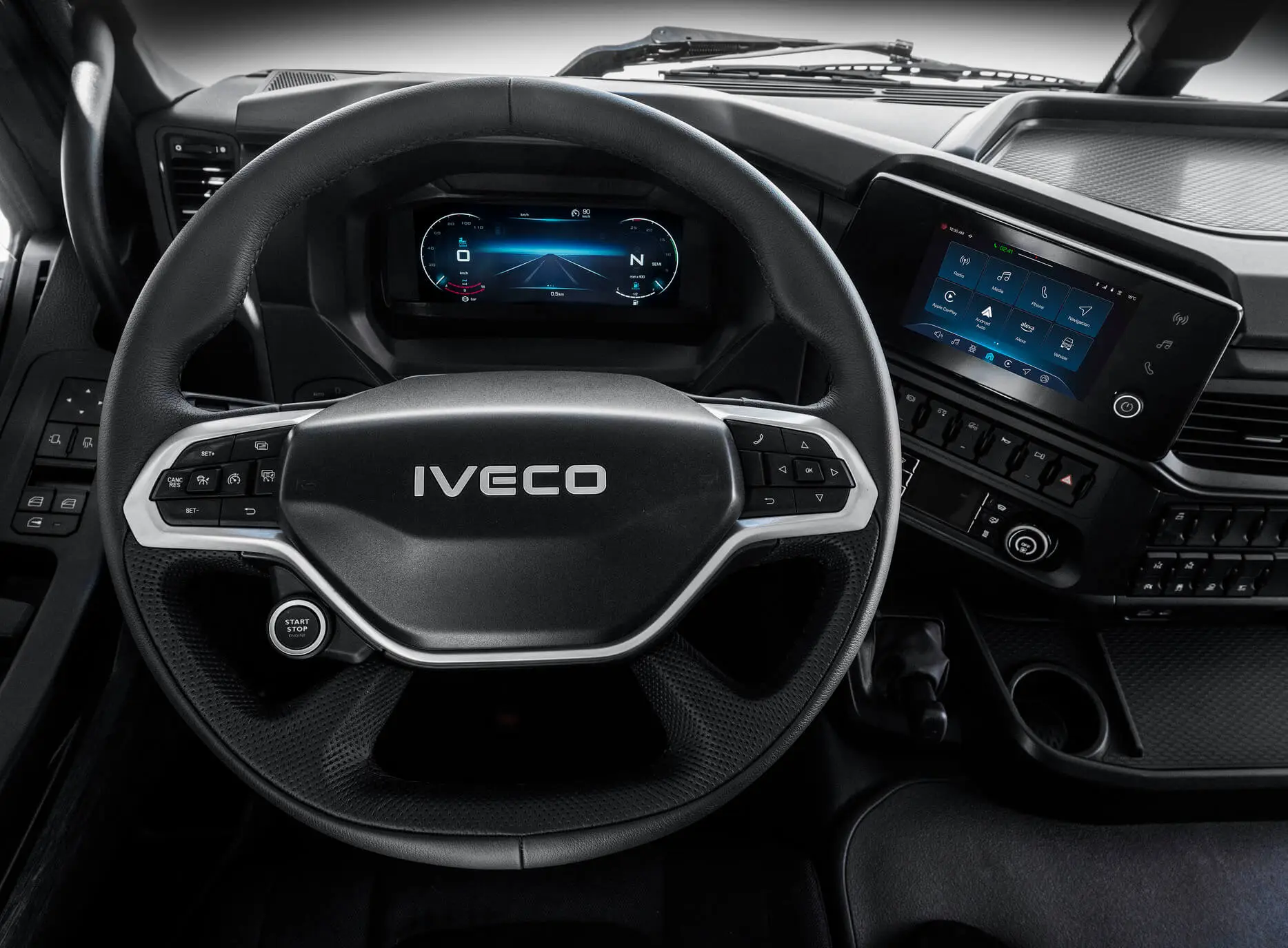 Новият IVECO DRIVER PAL е напълно интегриран в превозното средство. Това е най-модерният дигитален спътник за пътуване на IVECO, изграден върху уеб услугите на Amazon, който поставя нови стандарти в областта на иновациите за водачите, като въвежда възможност за гласови команди чрез функциите на Amazon Alexa*.